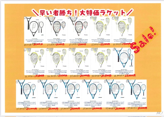 さらにラケットを購入いただくとガット張り代通常価格1,500円→1,000円