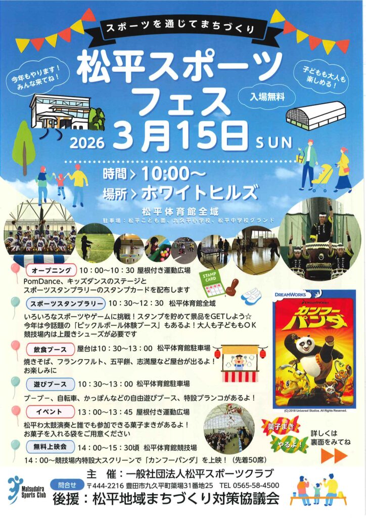 こんにちは!松平スポーツクラブです。昨年好評だった「松平スポーツフェス」