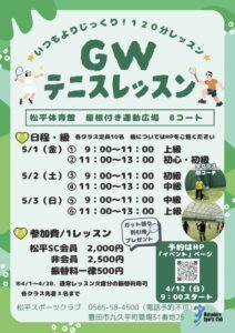 台風により「暴風警報」または大雨により「警戒レベル4」避難指示が「豊田市西部」に発令された場合、松平体育館が閉館になります。 ・松平スポーツクラブ主催の健康教室または硬式テニススクールにつきましては以下の対応をさせていた […]